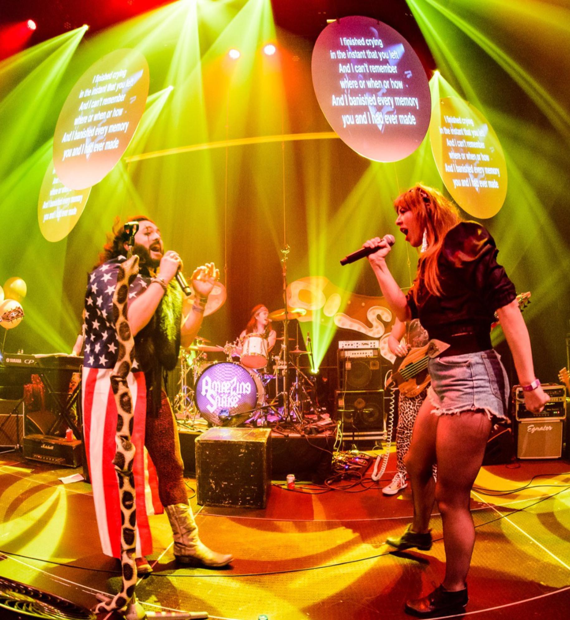 De Snäkes zorgen voor de teksten, video-animaties, een retestrakke rockband en SHOW. Het enige dat jij moet doen is je favoriete rockhit zingen en omdat Amaezing Snäke de teksten groot projecteert, helpt het publiek ook altijd een handje mee. Kom je er niet uit of heb je de bibbers? Hun zanger helpt je graag uit de brand. Amaezing Snäke stond inmiddels al 5 keer op Graspop en hebben alle ervaring om jou er op je rockin best uit te laten komen. Na de show kun je verder feesten op livegedraaide rock-klassiekers!